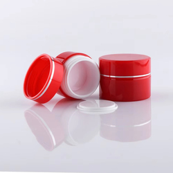 Custom Red PP 50g di peso pesante barattolo rotondo crema cosmetica coperchio in plastica bianca 50g di capacità per la cura della pelle crema per il viso per il corpo contenitore Scrub